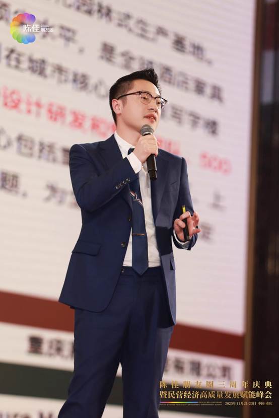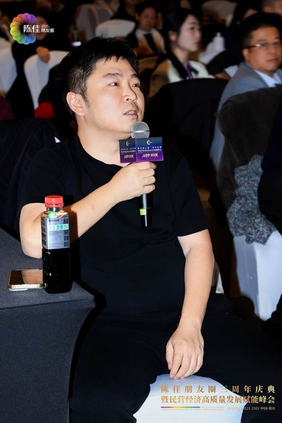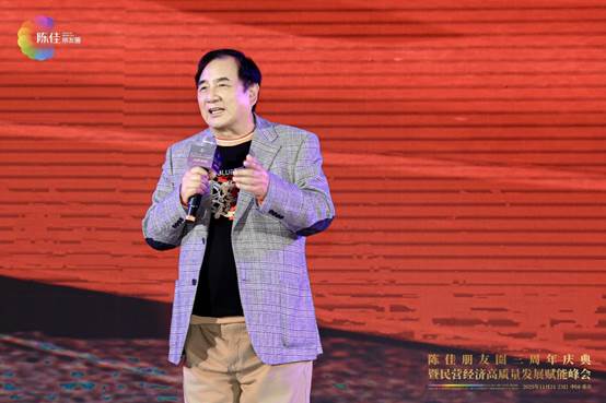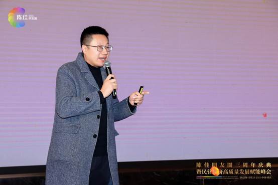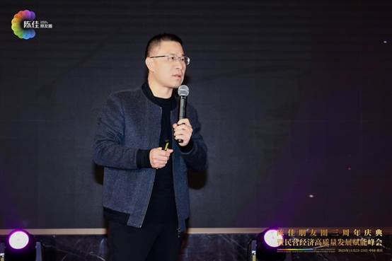 重庆市工商联党组成员、副主席、兼社会组织综合党委书记王进主席在致辞中,从宏观视角深入剖析了当前民营经济发展面临的机遇与挑战。他指出,在新时代背景下,陈佳朋友圈打造的“圈层生态”模式,正是破解民营企业“单打独斗”困境的创新之举。通过资源共享、智慧共创、价值共生,佳圈为民营企业高质量发展探索出了一条切实可行的路径,在价值创造层面践行“利他”理念,构建了可持续的商业价值生态,并在创新发展层面探索出了符合中国特色的民营企业赋能新模式。王进主席的精彩发言引发了全场嘉宾的强烈共鸣。