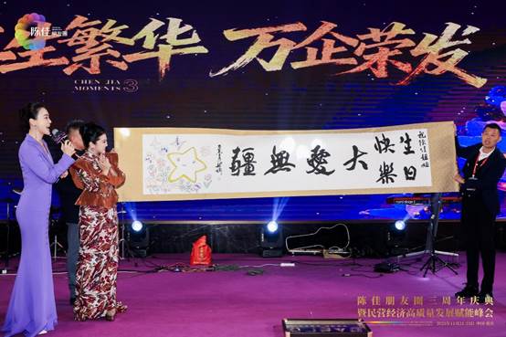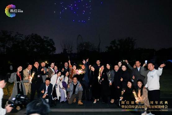 这“繁花似锦”的景象,生动映照着中国民营经济百花齐放、生机勃勃的现状,也象征着陈佳朋友圈汇聚英才、共荣共生的美好愿景。
