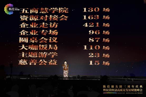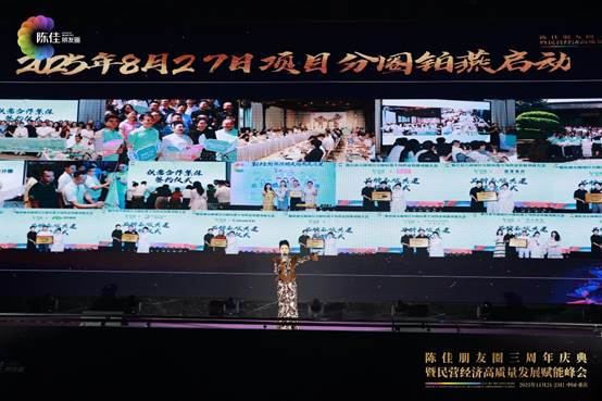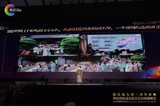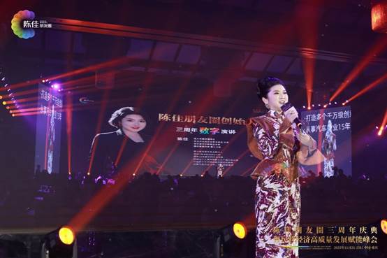 活动的核心环节——“致敬3岁 ‘数’启新程”三周年数字演讲,由创始人陈佳女士亲自担纲。在万众瞩目下,陈佳女士闪亮登场,她用十个铿锵有力的标题,“数”说了陈佳朋友圈波澜壮阔的2025年,并清晰勾勒出未来发展的宏伟蓝图。