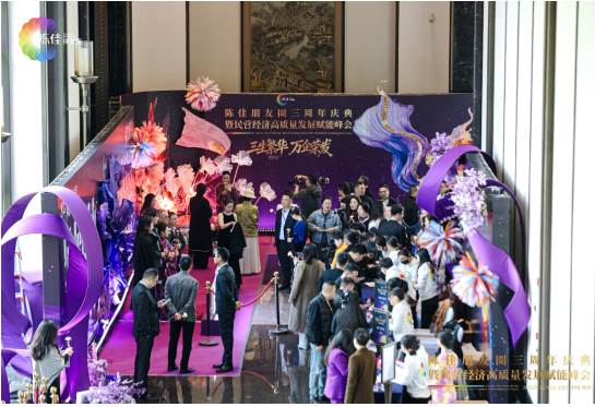 本次盛会以“三生繁华,万企荣发”为主题,选用象征天运眷顾与无限生机的“紫色与火”为主题色,汇聚了来自全国各地的近千位政商学界领袖、商协会会长、行业精英与陈佳朋友圈的私董佳人们。