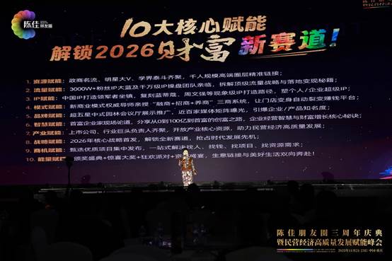 陈佳朋友圈必将始终秉持“利他”的初心与原点,以“十方赋能”体系为强大引擎,与所有胸怀梦想的企业家继续携手,在“九紫离火”的宏大气运中,共同奔赴那“万企荣发”的壮丽未来,为中国民营经济的高质量发展持续贡献“佳圈智慧”与“佳圈力量”!