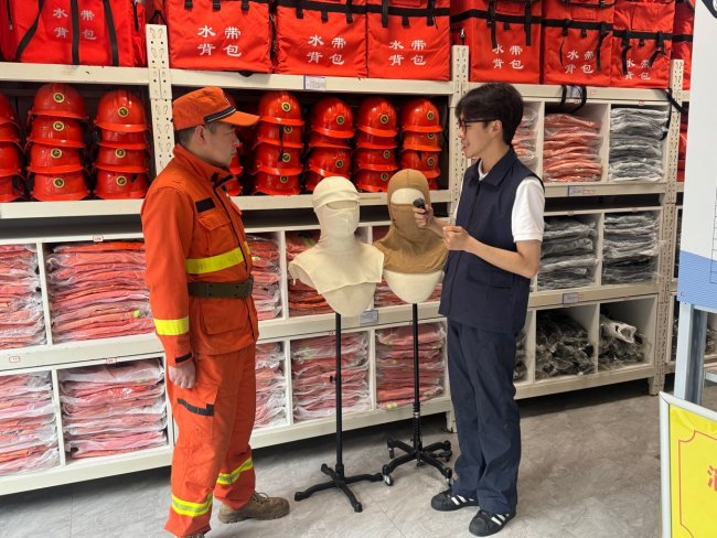 在试穿体验环节,消防救援队员结合森林灭火和应急救援任务实际,围绕佩戴便捷性、结构贴合度、隔热阻燃性能、透气性、视野清晰度以及动作灵活性等方面,对产品进行了细致反馈。消防战士们普遍认为,该头套整体结构较贴合头部轮廓,能够较好覆盖头部和颈部关键防护区域,在保障基础防护性能的同时兼顾一定活动自由度,特别是在耐高温、隔热和阻燃等方面表现出较好的应用潜力。