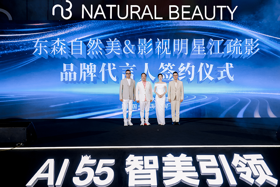 2026 年 4 月 14 日,东森自然美于中国珠海横琴举办 55 周年战略发布会ΓAI55·智美引领」。在媒体及品牌嘉宾的共同见证下,东森自然美正式宣布实力演员江疏影成为品牌代言人,并完成签约仪式,开启品牌全新发展阶段。本次合作不仅是一场代言发布,更象征着东森自然美在 55 周年的重要时刻,迈向以科技驱动的 “智美时代”。