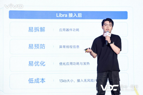 vivo系统度量专家李澳介绍,Libra提供主动查询和事件回调两大类接口。今年新增三大开放能力,首先是壳温信息,让应用能直接获取设备外壳的温度数据;其次是线程高负载异常信息,可实时预警线程运行中的异常负载情况;最后是soc器件耗电信息,为功耗分析提供更高精度的关键数据。通过Libra SDK,开发者可以更直观地掌握功耗细节,快速定位异常根因,落实优化动作,最终提升用户留存。