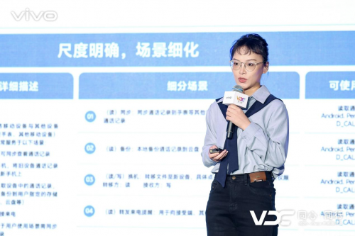 在信息安全备受关注的今天,隐私权限已成为应用和用户共同关注的焦点。会上,vivo互联网产品专家郑小楠分享了新一代隐私权限体系。她指出,用户担心隐私数据泄露,导致权限拒绝率高居不下。用户不放心,开发者业务也跑不通。而新一代隐私权限体系,正是为破解这一行业难题而生。