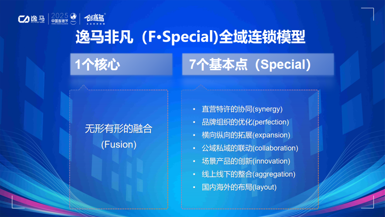 结合长期实战研究,马瑞光博士系统分享了逸马自主构建的“逸马非凡(F·Special)全域连锁模型”,该模型围绕“多模式协同、品牌组织优化、公私域联动、线上线下一体化”等关键模块展开,形成一套支持连锁品牌稳定复制、持续进化的战略操作体系。模型核心强调:在AI逻辑主导的新阶段,企业增长的确定性将来源于系统的精细度与组织的协同性。