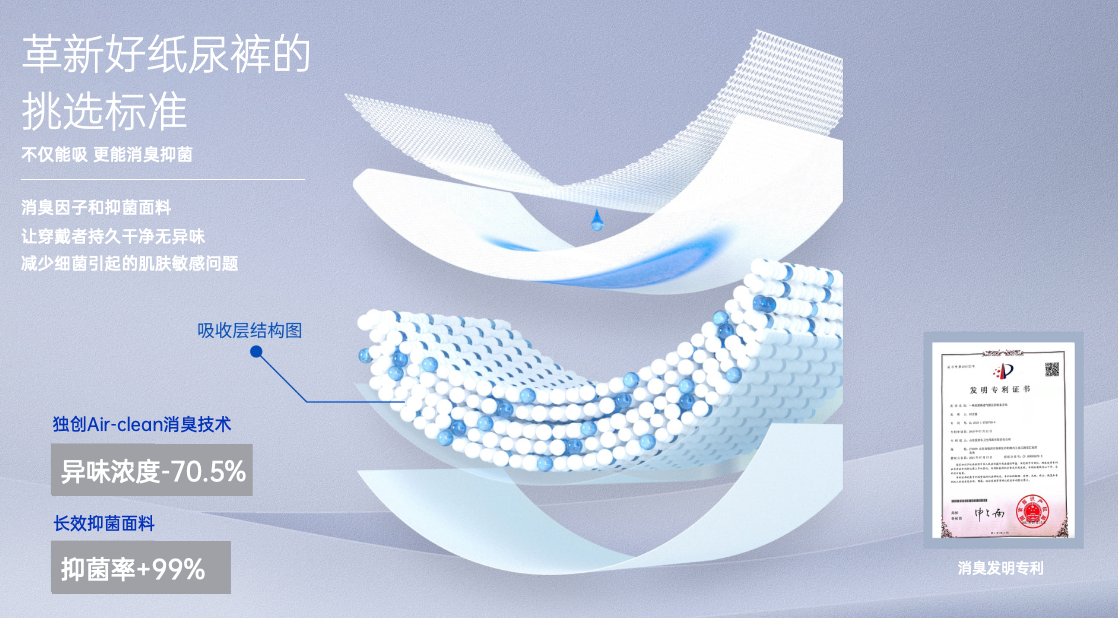 4. 专利活护消臭工艺:全系搭载爱舒乐独创活护消臭配方+ 进口 SAP 高分子抑菌芯体,对大肠杆菌、金黄色葡萄球菌的抑菌率达99%,4 小时氨气去除率达90%,从源头抑制细菌滋生与异味产生。不管是轻失禁长辈偶尔的异味问题,还是重度失禁长辈的持续抑菌需求,都能完美解决,深夜封闭环境下无异味,让长辈远离尴尬,也让照护环境更清爽。