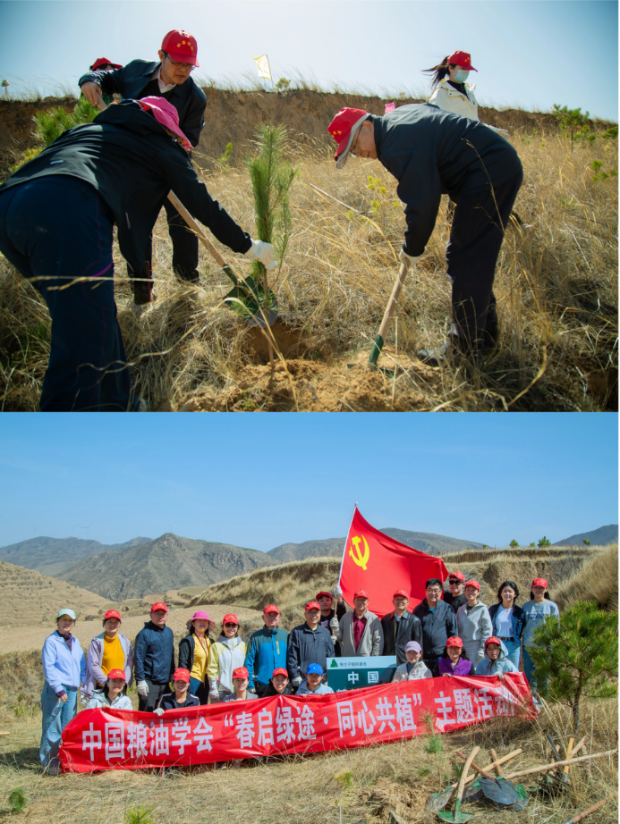来自中国粮油学会、中国报关协会、中国船舶工业行业协会、中国食品工业协会、北京市京剧昆曲振兴协会、北京大兴区天宫院街道办事处、蔚县县委县政府、蔚县教育和体育局、蔚县羽毛球协会、益海嘉里金龙鱼集团(北京)党委,以及众多行业伙伴与爱心人士代表,总计160余人齐聚一堂,挥锹培土、提水浇灌,用汗水种下1000余棵松树,为生态蔚县再添盎然生机。