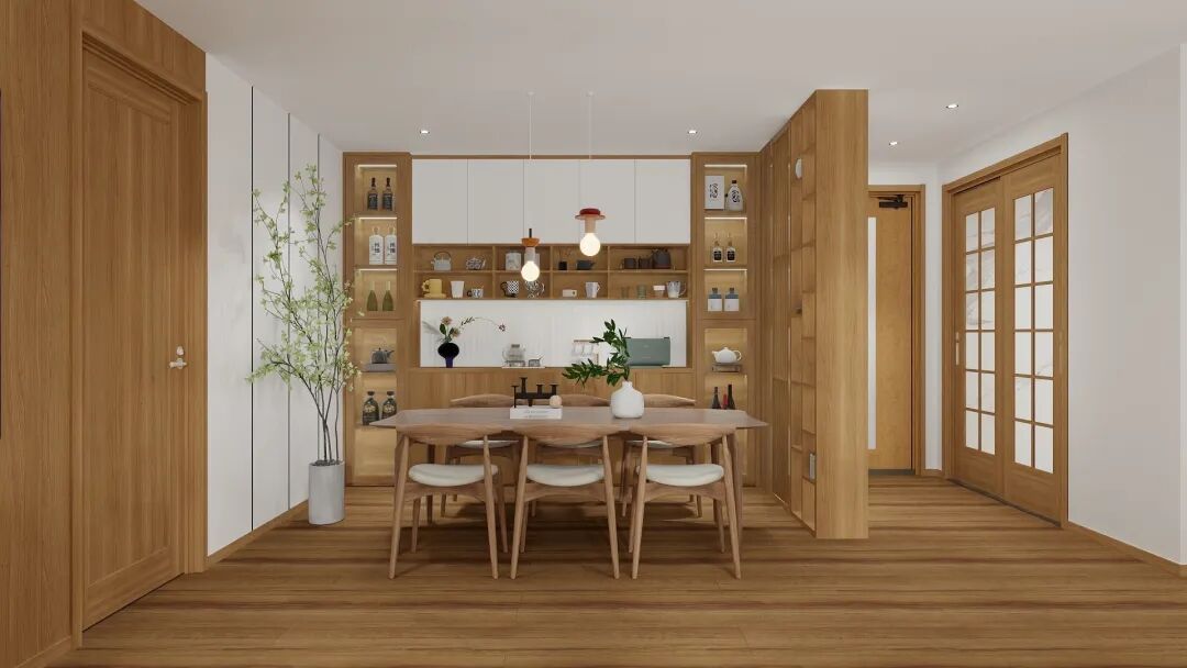 餐厅缺乏收纳体系与区域性,依托骊住定制化设计方案,可同步达成收纳功能强化与空间隔断划分的双重核心目标,既解决餐饮场景下的物品规整需求,又实现空间功能区的科学界定,提升整体空间的实用性与美学价值。