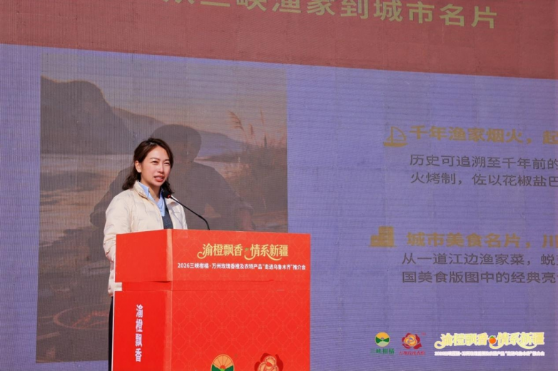 万州区经济作物发展中心正高级农艺师汪小伟、万州区农业农村委员会杨颖、重庆状元红食品科技有限公司代表唐海燕依次登台,分别围绕万州玫瑰香橙的品种优势、营养价值与市场前景,万州烤鱼的产业化发展路径与产品体系,以及状元红调味产品的生产工艺与合作模式作专题推介,全方位展现了万州农特产品的卓越品质与核心竞争力。