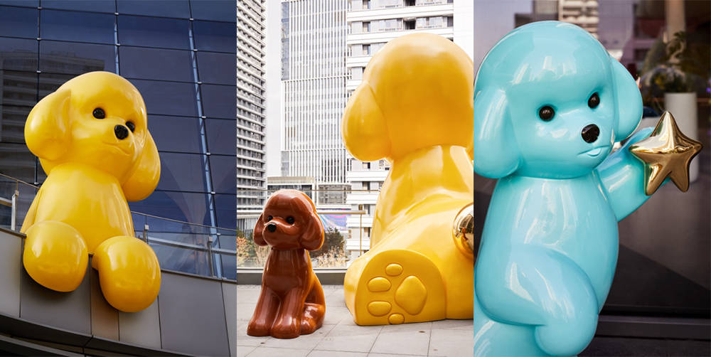 艺术家从现实小狗的形态中汲取灵感,加以提炼与概括,塑造出情感丰沛、憨态可掬的“陆小球”形象。结合陆悦天地的建筑空间语境,每只小狗被赋予独特的性格与动态姿态,不仅构建起它们之间亲密无间的关系,也拉近了作品与观者的情感距离。整个创作将观众引入一段温暖治愈的童话叙事,也为陆悦天地的公共空间注入一抹温柔而灵动的艺术气息。