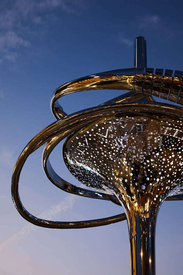 人们穿行于陆悦天地的公共场域,目光不自觉地被这件作品吸引,如同被无形的时空之力所牵动。每当夜幕降临,金属材质在光线中折射出星辰般的光芒,仿佛将宇宙的浩瀚与人类的渺小、科技的理性与艺术的感性完美统一。这不仅是对张江科技工作者的致敬,更是对人类探索精神的永恒礼赞。