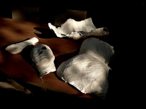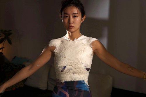 (艺术家刘沛翎在进行身体翻模,摄影师:JingIII)