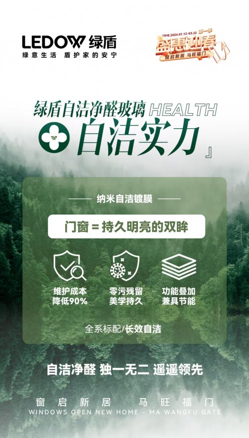 2026年1月12日-3月22日,绿盾门窗联合尚仓国际启幕“盛惠迎春”第一季活动,以“窗启新居马旺福门”为核心,将六大超值福利与双碳战略下的低碳节能、自洁净醛黑科技深度融合,为消费者打造集节能、净醛、优惠于一体的门窗焕新体验。