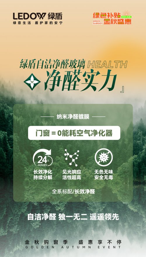 在国家双碳战略推动建筑领域绿色转型的背景下,绿盾门窗与尚仓国际强强联合,深耕低碳节能门窗赛道,本次活动主推的联名低碳节能门窗,直击建筑能耗痛点——门窗传热损失占建筑总能耗25%-30%的行业难题,构建“材料-结构-工艺”全链条节能解决方案。产品采用玻纤增强聚氨酯芯层与断桥铝复合型材,搭配PA66尼龙隔热条阻断“冷热桥”,型材传热系数(K值)低至≤1.1W/(㎡·K);玻璃配置上,除搭载双银Low-E中空玻璃、填充惰性气体并采用三道密封结构外,更全系标配绿盾自洁净醛玻璃,通过纳米净醛镀膜技术,让门窗化身“0能耗空气净化器”,实现24小时长效分解甲醛、见光响应活性提升、无色无味安全无毒的净醛效果,同时玻璃自清洁特性还能减少日常维护能耗,真正做到“节能+净醛”双管齐下。