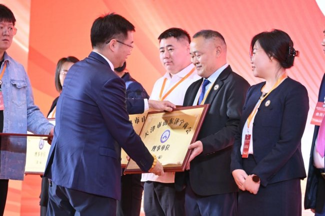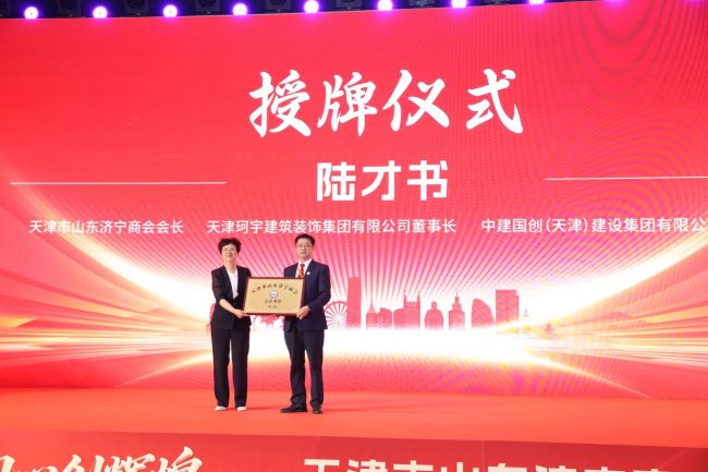 天津市山东济宁商会会长陆才书为理事单位颁牌