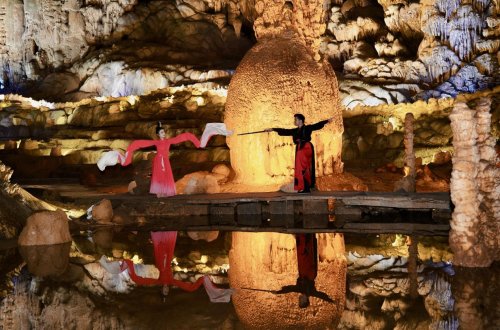 溶洞焕新:日演夜游+ 爱国献礼,地质奇观添人文温度