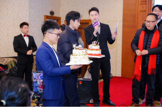 晚间六时许,皓月号已航行于渝中至朝天门的绝美江段。山城华灯全面绽放,勾勒出梦幻天际线。车友们于甲板凭栏远眺、拍照打卡,尽览都市繁华。利用此绝佳时机,一场为一月寿星专属策划的生日派对温馨举行,在集体祝福声中,为年会画上圆满句号。