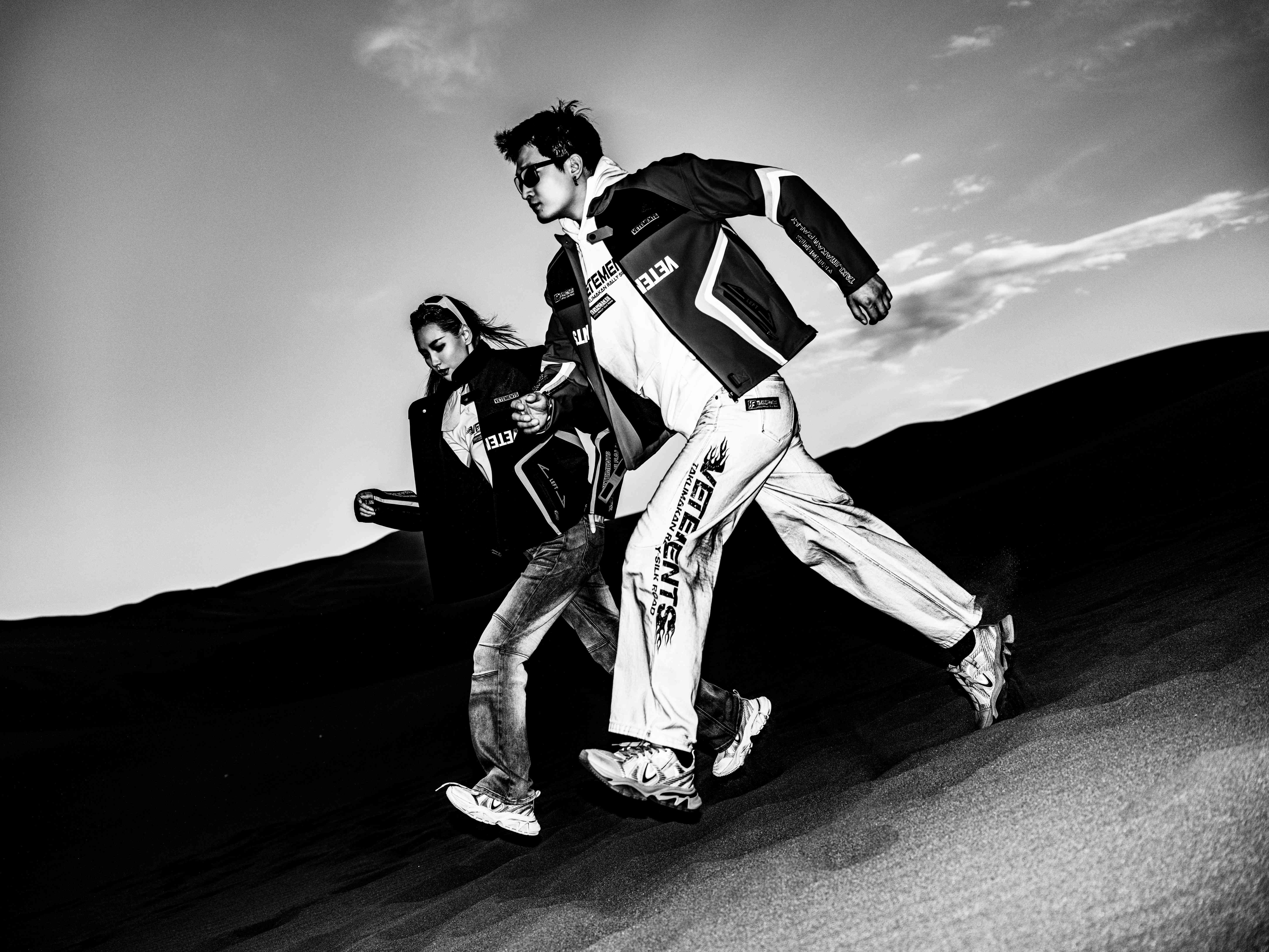 值得一提的是,VETEMENTS在今年还参与了新疆环塔赛事的联名合作。通过推出限定系列与联名款式,品牌将赛事所代表的自由、无畏与极限挑战精神融入设计之中。这场跨界合作不仅是品牌一次大胆尝试,更是两种“破界者”精神的共鸣与交汇。