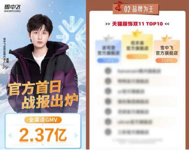 而“用户思维”下的深度运营则是让飞轮持续加速的关键。这在与代言人的合作上体现得淋漓尽致。雪中飞将顶流明星成毅的合作视为一项长期的品牌资产投资,通过情感化内容叙事和高互动性活动进行精细化粉丝运营,成功克服了代言效果递减的行业难题。数据显示,雪中飞全球品牌代言人成毅续约官宣后24小时内,品牌全域曝光量超10亿+,全渠道GMV达2.37亿,天猫服饰双十一羽绒服销售榜TOP2、抖音官方旗舰店旗舰榜、女装榜双TOP1,实现了品牌声量与市场销量的双重引爆。带动品牌整体销售额实现爆发式增长。成毅代言人营销的关键经营指标不仅延续了首年辉煌,更在全网曝光量、互动数据及销售转化等多个维度实现了显著超越,标志着品牌与用户的情感连接更为牢固,品牌资产持续增值。