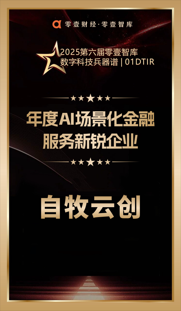 在“十四五”收官与“十五五”谋划的关键衔接期,我国金融行业正加速从“数字化”向“智能化”进阶。生成式AI、大模型等前沿技术与金融场景的深度融合,催生出一批以技术创新驱动普惠金融的新锐力量。近日,在零壹财经·零壹智库主办的“2025第六届数字科技兵器谱”评选中,自牧云创凭借在AI场景化金融服务领域的创新实践,获评“年度AI场景化金融服务新锐企业”。