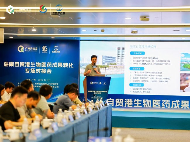 为巩固“2025海南自贸港全球药械出海生态大会”成果,深化粤琼合作,构建“研发在广东+转化在海南”“广东制造+海南出海”的产业协同新范式,推动广州实验室源头创新与海南自贸港产业政策精准对接,海南省工业和信息化厅联合生物岛产业育成服务(广东)有限公司,于4月22日—23日,在广州连续举办海南自贸港生物医药成果转化专场对接会、海南自贸港生物医药产业(大湾区)招商对接会。
