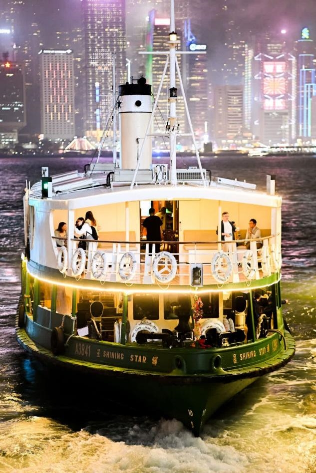 天星小轮的船身设计暗藏巧思:上白下绿的配色寓意天海相融,复古木质座椅与标志性星形烟囱,完整保留20世纪50年代经典风貌。百年间,它载过逃难市民、赴港移民,也迎送全球旅人,船舱里曾留下文人墨客的市井烟火,也承载过无数游客对东方之珠的第一眼惊叹。如今,这艘“活着的历史”以多元玩法,让不同需求的游客都能找到属于自己的维港记忆。