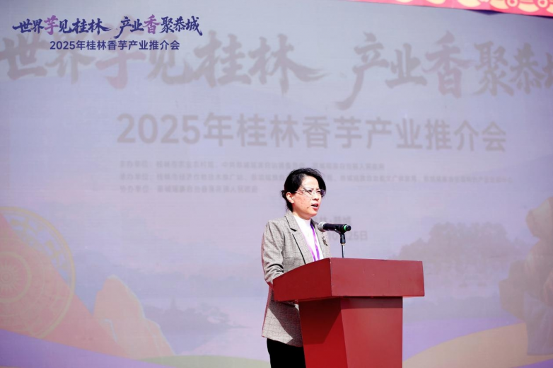 上午10时15分,活动在热烈的氛围中正式启幕。桂林市农业农村局党组成员、副局长周红英在致辞中指出,桂林香芋产业品牌已成为推动地方特色农业提质增效、带动农民持续增收的重要引擎。她强调,要以品牌建设为引领,持续拓展产业链、提升价值链,进一步夯实产业融合发展的基础,并对香芋产业的高质量发展前景表达了坚定信心。