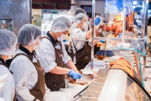 各商品柜台的服务也全面细化:肉禽柜台提供切丝、切片、绞肉、剥皮、剔骨等定制服务;海鲜柜台支持鱼类剖杀、切段、切片、清洗、滤水及活鲜打氧;水果柜台不仅提供清洗、去皮、分切服务,还对果切商品按甜度编号,指导顾客品尝顺序,确保最佳口感。