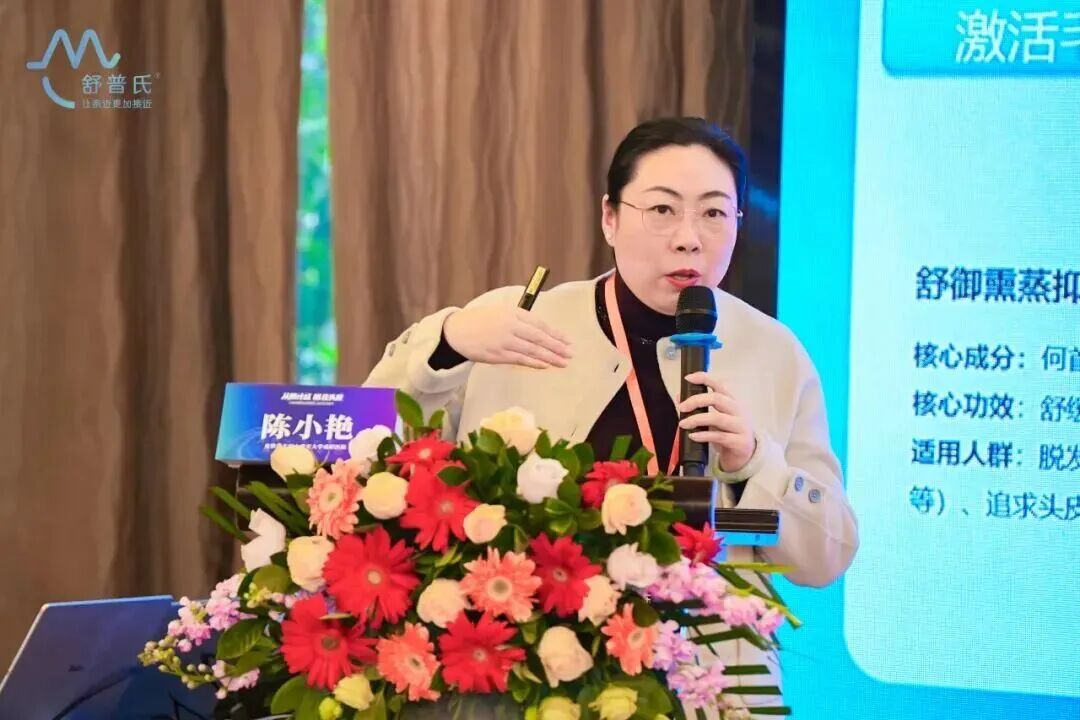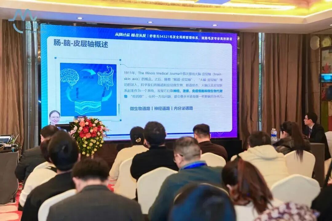 陈小艳教授则在《如何搭建毛发全周期管理体系,赋能毛发专诊高效建设》的专题分享中重点阐述了舒普氏54321毛发全周期管理体系在临床落地中的价值,特别是益生菌在防脱治疗中的整合作用。她表示内服营养干预,是毛发全周期管理的重要一环,益生菌可通过改善肠道屏障、降低全身炎症、调节激素水平,间接影响毛囊健康,实现“内调外养”协同。