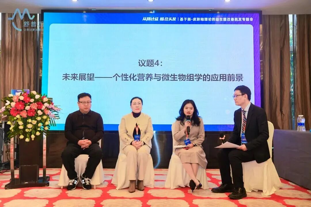 孙茫教授则从未来展望的角度肯定了个性化营养与微生物组学的应用前景,她指出毛发健康管理正走向“精准化”,下一步将是‘精准毛发医学’的时代,通过基因检测、肠道菌群分析等手段,未来有望实现个性化的营养干预方案,甚至针对不同脱发类型提供定制化的益生菌配方,实现靶向干预。