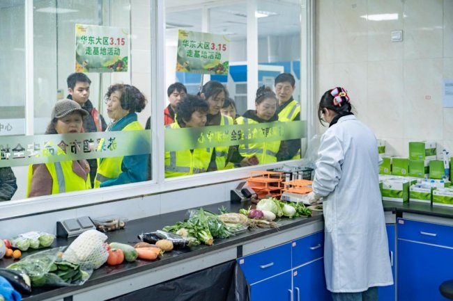 活动的最后一站是苏果食品安全检测中心。检测中心负责人介绍,专业人员每天对生鲜果蔬商品进行批批检测,日均检测量约400批次,覆盖接近200吨生鲜商品。一旦检测发现相关指标不合格,工作人员会立即对该批次商品进行拒收处理,坚决退回供应商,并同步启动质量违约处理程序,确保问题商品“零入库”。