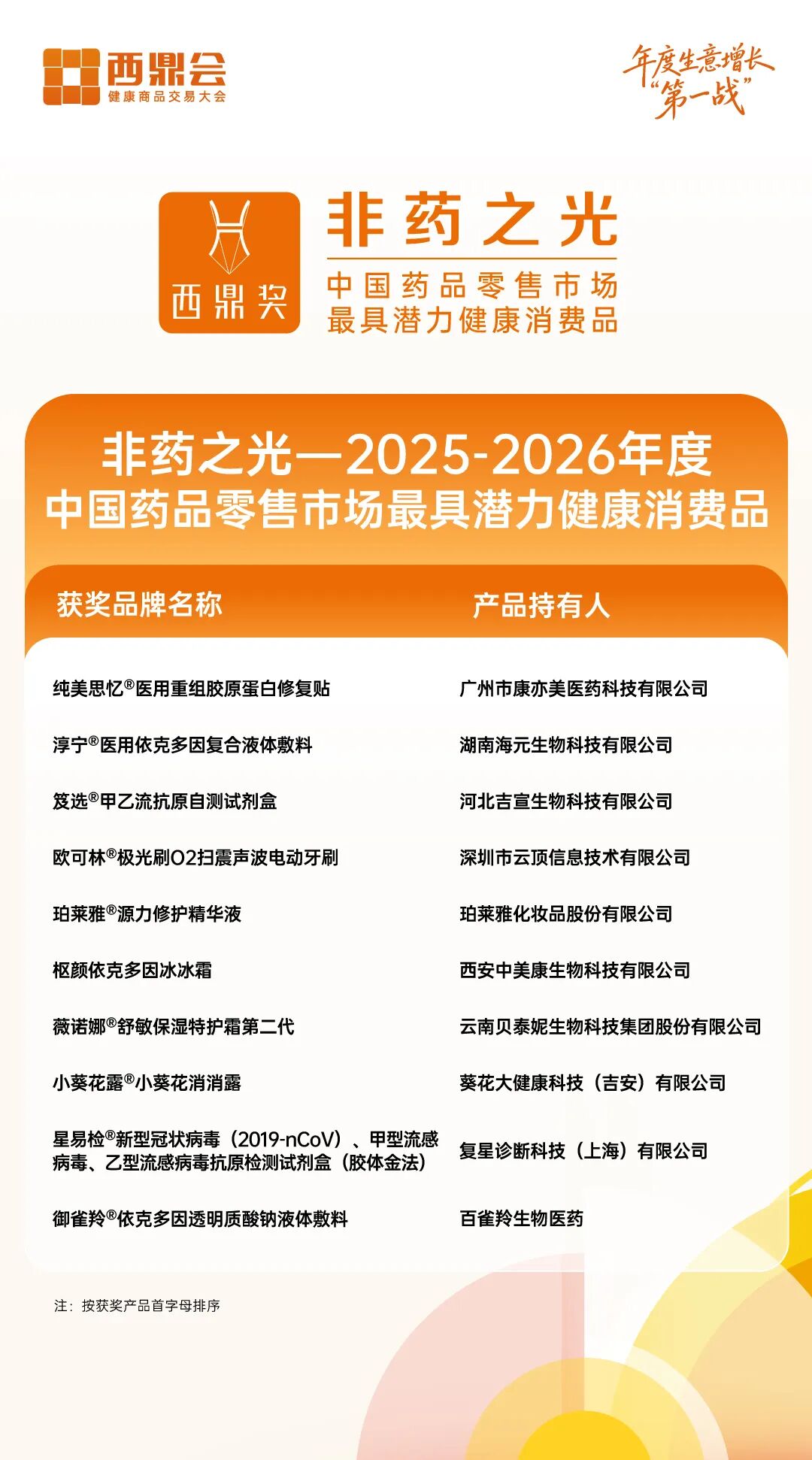 立足行业创新驱动转型的关键节点,西鼎会组委会依托中康产业研究院权威数据与科学评估体系,从数百款参评产品中遴选出20款零售适配型创新药与10款高增长潜力的健康消费品,旨在为药店提供具备战略价值的选品决策参考,推动供零高效对接,共同挖掘院外市场的结构性增量。