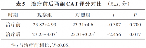 治疗后,西黄组的CAT评分较对照组提升显著(P<0.05)。见表5。