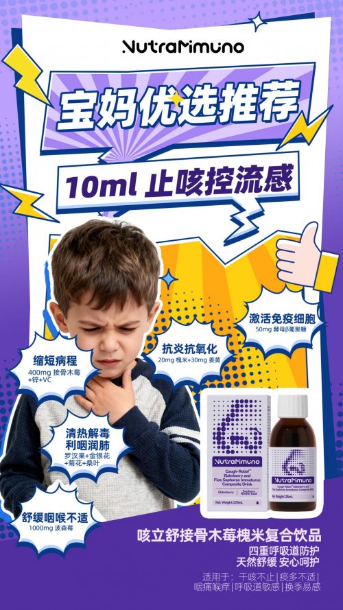 而作为日常养护的营养补充手段,益免乐咳立舒通过天然成分的精准搭配,既兼顾了对呼吸道黏膜的直接养护,又强化了免疫系统的防御能力,形成“黏膜保护 + 免疫增强”的双重防护模式。其不含香精、色素等刺激性成分的配方设计,更贴合儿童的生理需求,让家长在使用时更放心。