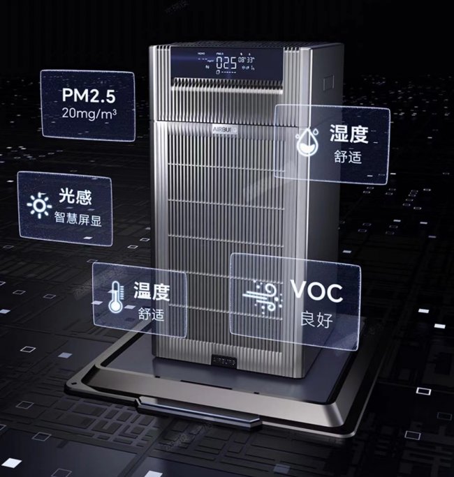 搭载AI双传感检测系统,同步实现甲醛、PM2.5浓度实时精准监测与数字化显示,数据可视化更直观。支持手机APP远程操控,适配大平层分区定制净化模式,可独立设置客厅强效净化、卧室静音净化等场景模式,兼顾净化效率与使用灵活性。