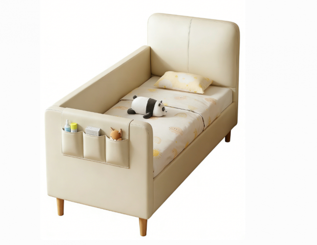 安全防护细节:床体采用无缝隙防卡陷设计,护栏提供60cm/80cm双高度方案,边角均做圆滑处理,能有效降低磕碰和外翻风险;拼接款自带防侧翻设计,整体防护细节更完整。
