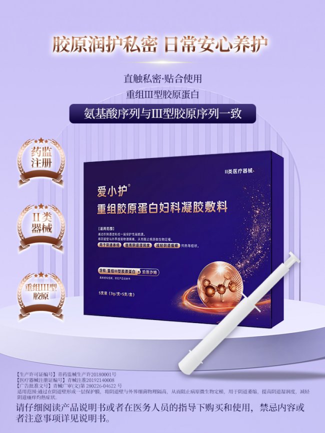 目前市面上同类合规产品不在少数,爱小护重组胶原蛋白妇科凝胶敷料之所以能获得众多女性的认可,支撑其产品定价,核心原因在于它精准匹配了“避孕药致干涩人群、备孕期女性”的核心使用痛点,实现了普通润滑产品难以达到的高适配性。接下来我们从胶原活性、非激素安全以及长效防护三个维度,为大家详细解析这款产品。