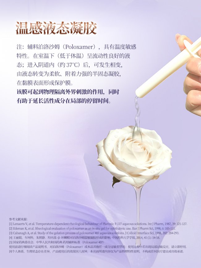 图为爱小护重组胶原蛋白妇科凝胶采用的医药级温敏凝胶配方说明