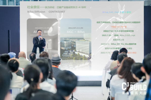 发布会上,吕嘉披露了一组核心数据:Billus 前序版本(0.4C大模型)历经 1 年多开源社区打磨,凭借对建筑结构与东方审美的精准理解,迅速占据行业领先地位。截至目前,Billus AI 已累计贡献了 超 28万+ 次 的高频专业使用量(Usage Count)。这一高粘性的垂类数据积累,构成了 Billus 难以复制的技术护城河。