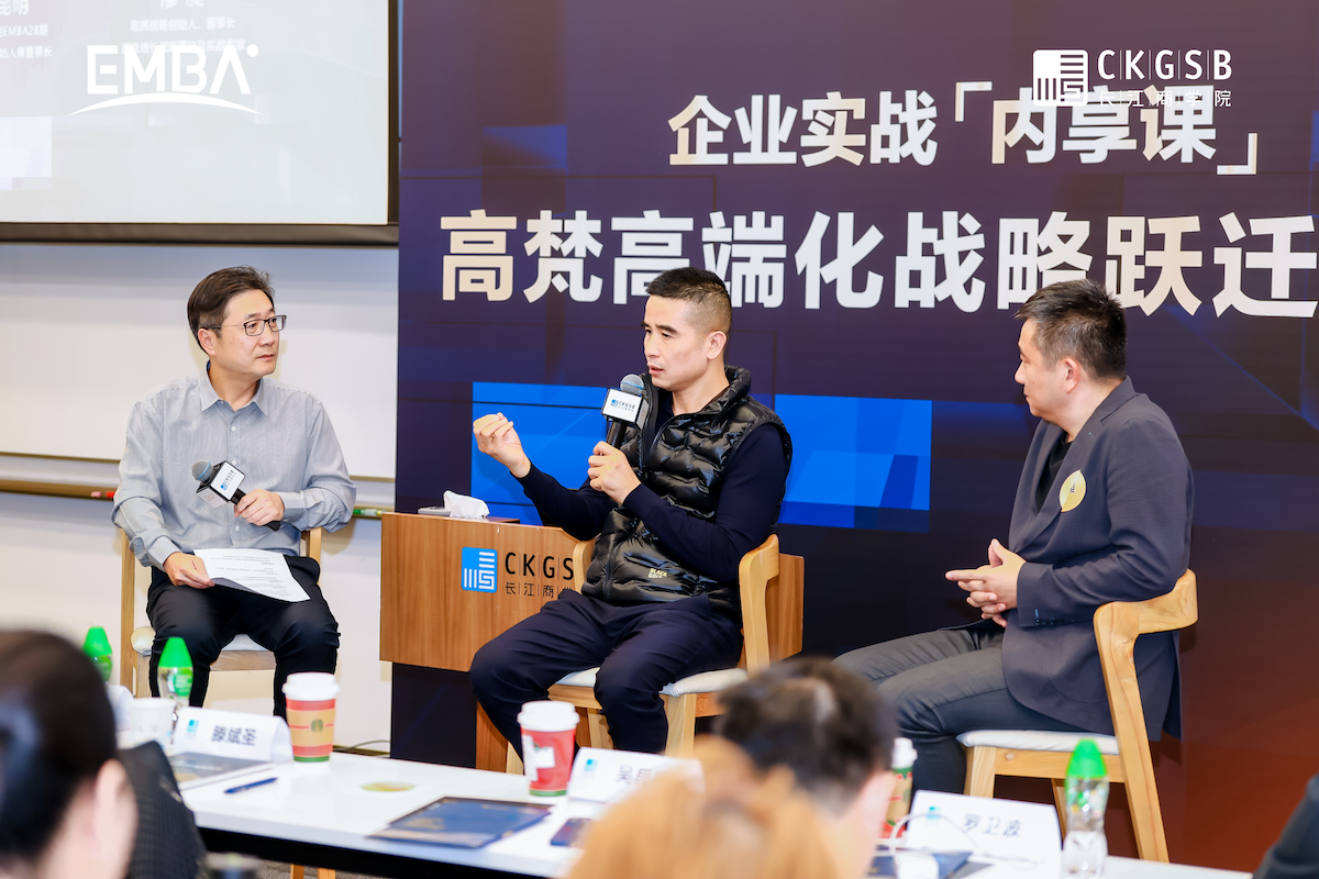 课堂核心环节,高梵品牌创始人、董事长吴昆明(长江EMBA28期校友)与歌辉战略联合创始人周子玉,分别从“企业家”与“战略外脑”的双重视角,详细复盘了高梵的转型路径。