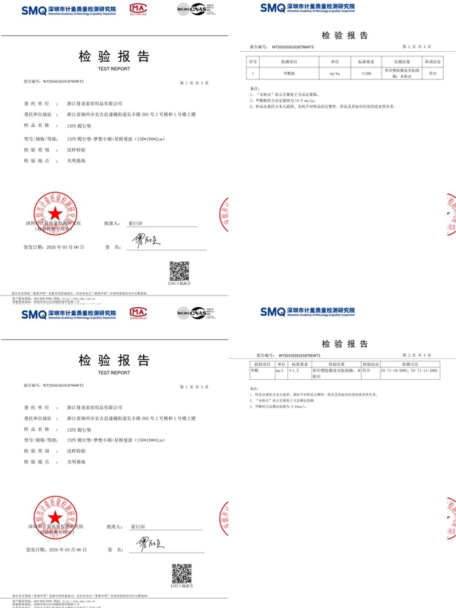 随着中国家庭对婴幼儿产品安全要求的提升,国内婴童用品行业正加速质量升级。2026年3月,深圳市计量质量检测研究院对国货品牌曼龙旗下IXPE材质婴幼儿爬行垫完成专项检测。结果显示,该产品甲酰胺、甲醛含量均为“未检出”,远优于国家相关标准限值,同时通过食品接触级材料测试,为行业安全标准提升提供了可参考的实践案例。