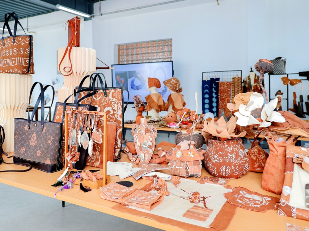 活动当日,“丝路唐韵”服装秀惊艳全场,柿漆染就的棕褐纹路,缀以唐式纹样,古朴与现代交织生辉;艺术教室内,游客还可亲手DIY柿染方巾,带走“秋日色彩”。这背后是西安美术学院的深度赋能:双方共建“柿染文创微专业”,以现代设计活化非遗;学生通过直播销售作品,打通“艺术+产业”闭环,为特色产业发展注入新活力。