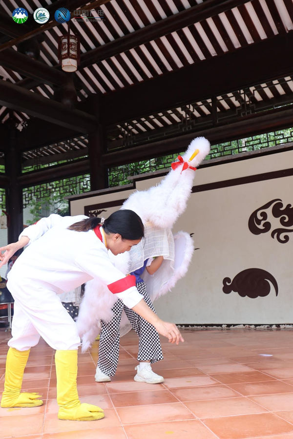 孩子们亲身体验国家级非物质文化遗产“三灶鹤舞”,领悟人与自然和谐共生的生态智慧