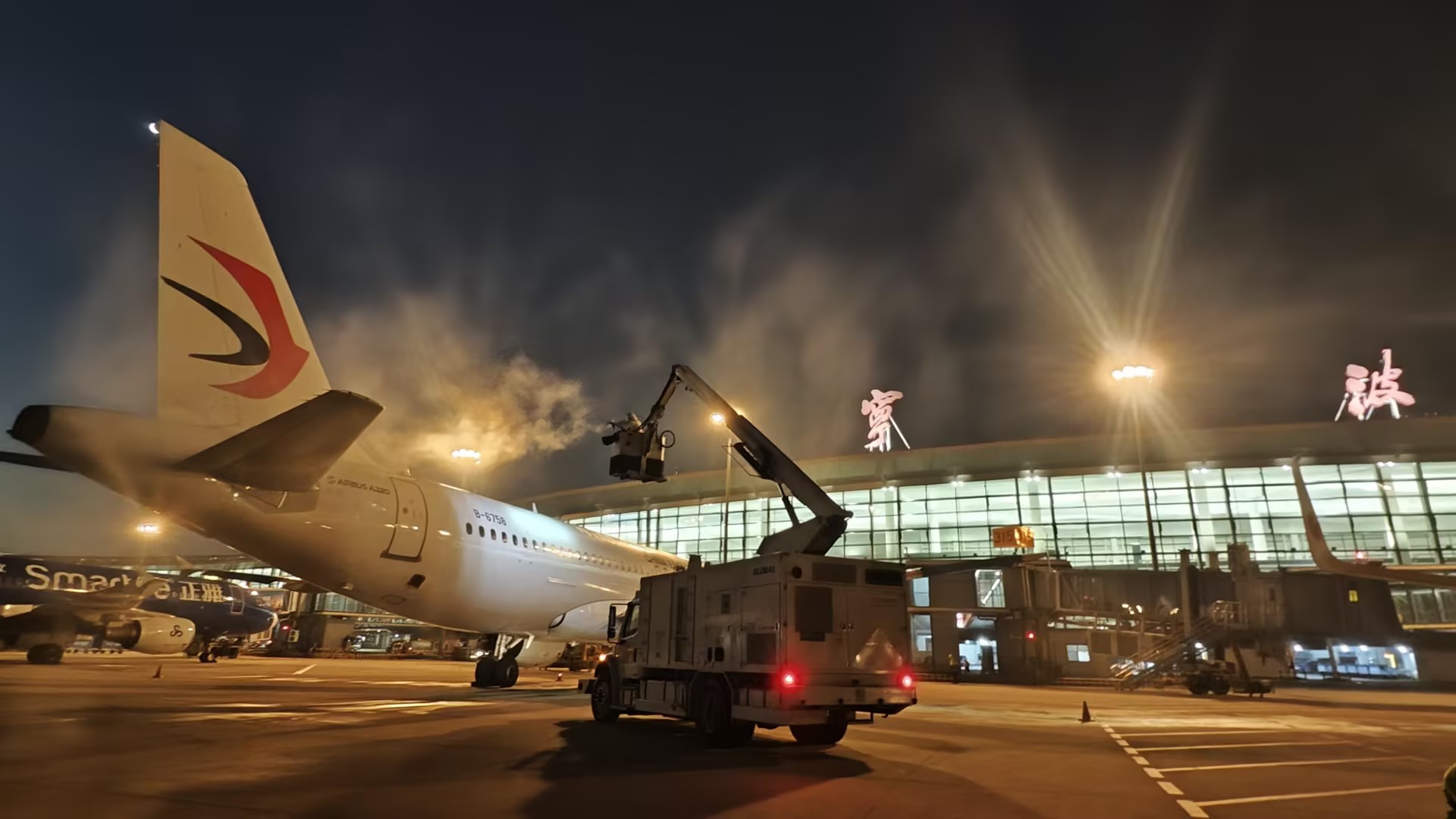 1月20日清晨,南昌迎来战2026年首个寒潮天气。东航江西分公司闻雪而动,截至清晨6时51分,顺利完成11架次航班航前预除冰作业