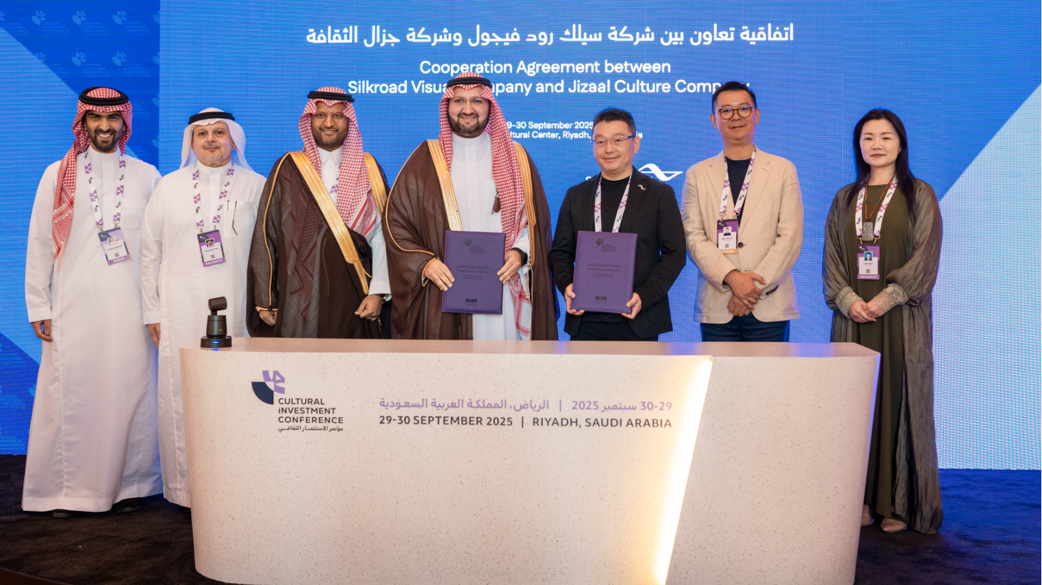 2025年9月底,在利雅得举行的2025年沙特文化投资大会(Cultural Investment Conference),中国数字视觉领军企业丝路视觉与沙特王室企业Jizaal签署战略合作协议,意向合作金额达5000万沙特里亚尔(约合9489万元人民币)。