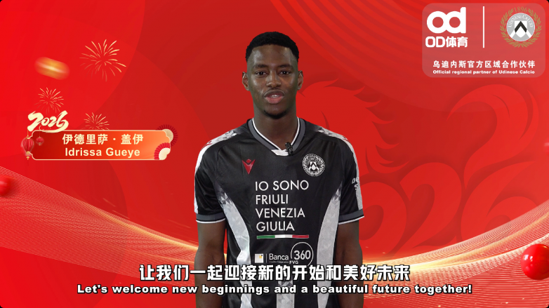 最后中场核心尼科洛·贝尔托拉则代表俱乐部与品牌共同发声,向全球华人球迷致意:“OD体育与乌迪内斯祝您新年快乐。”而锋线球员瓦库恩·巴约以充满热情的语气真诚表达祝福:“OD体育和乌迪内斯祝您在新的一年里,事业兴旺,硕果累累!”