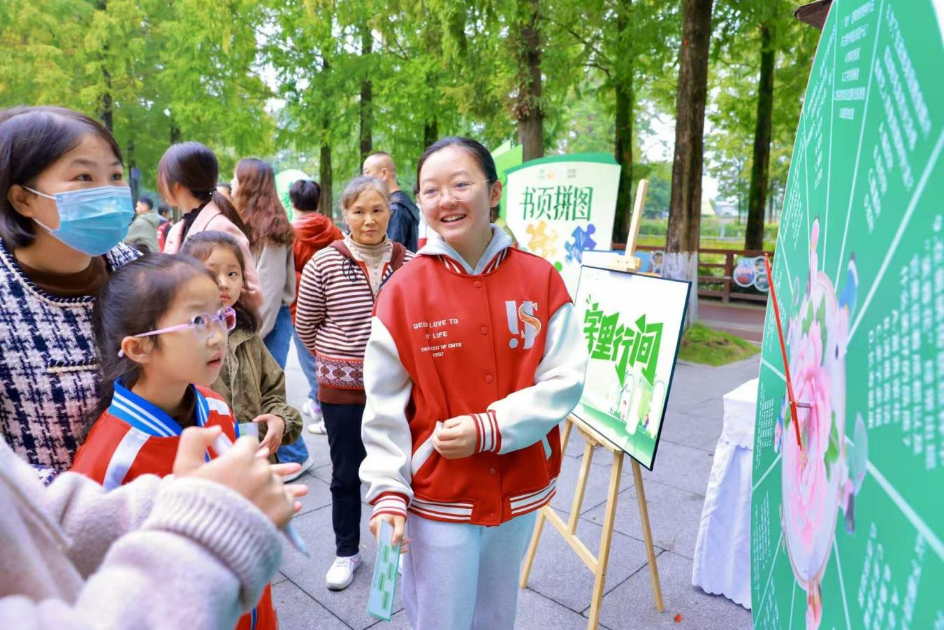 为提升全民阅读的吸引力,活动创新设置集章游园模式。现场围绕蜀绣知识与传统文化,设置六大互动游戏区。居民们在“字里行间”里抢答,在“书页拼图”中识纹,在“书绣接力”中朗读。这些游戏将阅读积累转化为趣味挑战,成功打破了传统阅读活动的静态模式,让居民在欢声笑语中深化了对本土文化的认知,有效提升了参与感与获得感。