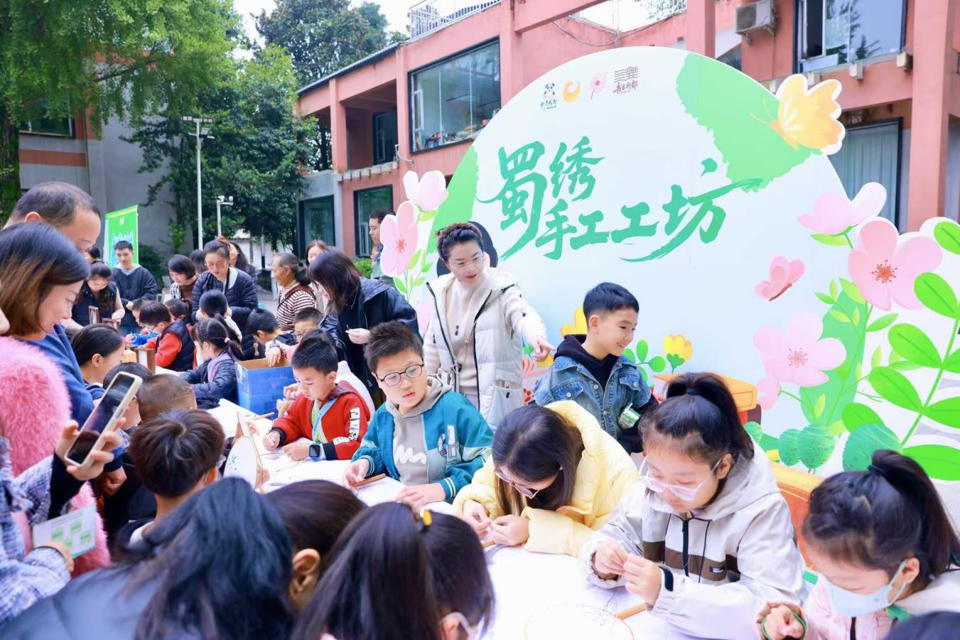 最受欢迎的“蜀绣手工工坊”将阅读推向高潮。在传承人指导下,居民们拿起针线,将书中描绘的纹样变为触手可及的绣品。这一环节让书香通过指尖融入记忆,真正实现了“阅读-理解-创造”的闭环,让阅读转化为“知”到“行”的实践。