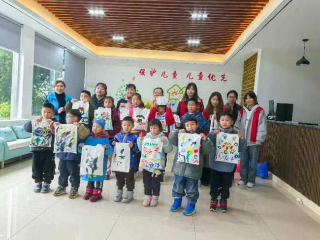 创作完成后,孩子们依次上台展示作品、分享创作理念,老师对每件作品进行点评鼓励。主办方为参与儿童发放关爱物资,并组织全体合影留念,定格温馨美好的亲子瞬间。